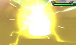 Pikachu's cheeks emit blue sparks before its body becomes surrounded by yellow electricity. Then, Pikachu tackles the opponent. | ||