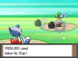 Froslass floats up to the opponent and slaps them across the face with one of her hands, automatically waking up the opponent if it is sleeping. It also does more damage if the opponent is sleeping. | ||