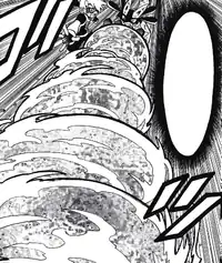 Swampert's tailfin glows orange and it gathers water vapor from the air above its tail. A geyser then fires from the water above Swampert's tailfin at the opponent and sucks it up into a water tornado. | ||