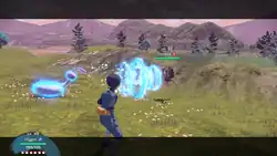 Frogadier creates a blue sphere of energy from in between its hands or it creates a blue sphere of energy in front of each of its hands. It then fires the spheres at the opponent, which explodes into a wave of water. | ||