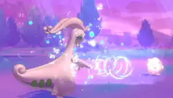 A large ring of water appears around Milotic's body and expands; or, Milotic releases a stream of water surrounded by rings from its mouth at the opponent. | ||