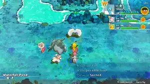 Waterfall Pond (Japanese: 滝壺の池 Basin Pond) is a Pokémon Mystery Dungeon: Red Rescue Team and Blue Rescue Team and Pokémon Mystery Dungeon: Rescue Team DX that contains 19 floors. It is automatically accessible after the completion of the main story, though HM Waterfall is required from Solar Cave to enter the dungeon. This is also the first dungeon where the player will be able to recruit any of the first partner Pokémon. Spawned items have a 5% chance to be sticky.