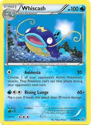 Amnesia is a move in the Pokémon games that Whiscash can learn. Rising Lunge is an attack that first appeared on Seaking from Neo Revelation. This card's Pokédex entry comes from Pokémon Y.