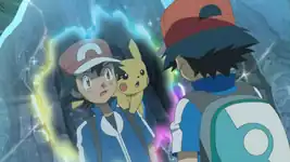 After our Ash helps Mirror Ash drive off Team Rocket and reclaim his own Pikachu, Mirror Clemont tells him of a frightening legend—people who pass through one of the mirrors in Reflection Cave must return to their own world before sunset or risk being stuck on the wrong side of the mirror forever! Ash hurries back to the mirror he first stepped through, where his friends are waiting on the other side, and all of them focus on reuniting with each other.