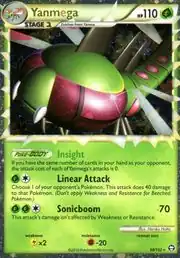 Yanmega (Japanese: メガヤンマ Megayanma) is a Grass-type Stage 1 Pokémon Prime card. It is part of the Triumphant expansion.