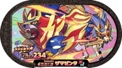 Zamazenta (Japanese: ザマゼンタ Zamazenta) is a Grade 6 Pokémon Mezastar tag. It is part of the fifth Gorgeous Star set.