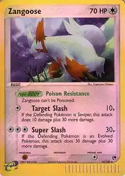 Zangoose (Japanese: ザングース Zangoose) is a Colorless-type Basic Pokémon card. It is part of the EX Sandstorm expansion.