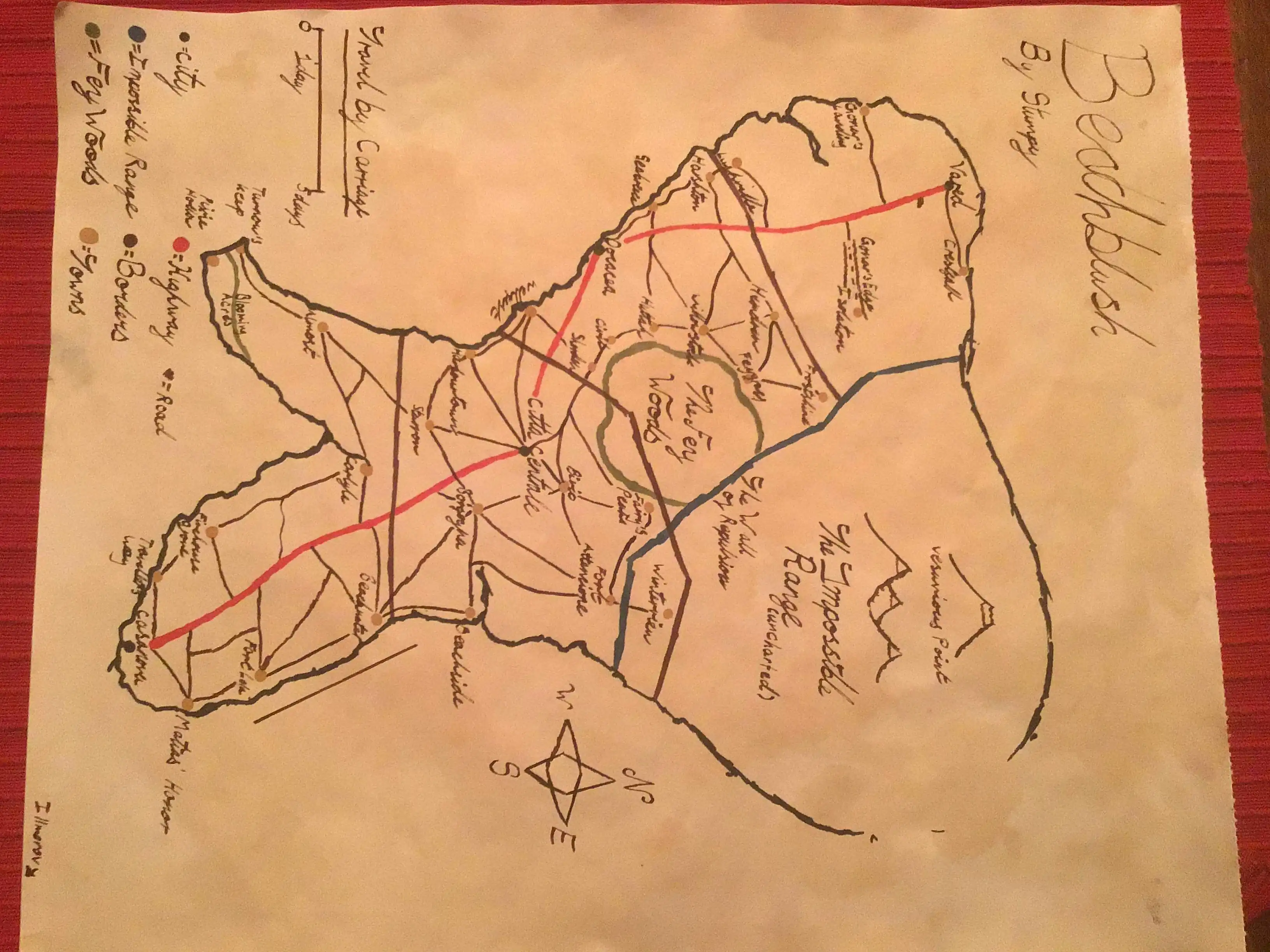 Geography and Climate Beachblush is caught in the middle of two temperature fronts that cause the climate to shift much more suddenly than usual. At the southern edge of the country is a warm front, this makes that area hot and beachy, and to the Northeast is the cold front, which drastically lowers the temperature to near-constant sub-zero degrees, and the meeting of the two fronts to the Northeast creates weather so unendingly harsh that nobody has even been able to properly chart the area, this is known as the Impossible Range. Geographically speaking, the southern end of the country is mostly flat, but gets more hilly towards the lower center and Southwestern areas of Beachblush. It's here that you'll find most of the forests too. The Impossible Range is snowy and mountainous, the front creates a miniature tree line so nothing naturally grows. The furthest anybody has ever been able to live is the town of Winterhelm, a small group of intrepid explorers who settled there in the last generation. To the Northwest, the snow remains, but the land is much more forgiving, while still not densely populated, the area around Vared is cold, but workable. Cities and Towns Beachblush's towns were, for a long time, largely cut off from each other. The Santiago dynasty would monitor their progress through envoys and make sure that the various towns were progressing according to the doctrines they imposed, but actual crossover was rare, at least on an official level. For this reason, when coming up with the descriptions of the towns, think in loose terms that the towns of any particular district will conform to the architectural style of the city whose district it resides in. However, there's only so much control that a travelling envoy of a dictatorship can assert, and thus, towns still have their own distinct flavor based on their own geographical need, isolated cultural practices, and other reasons; not to mention the shifting styles that have come and gone throughout the lifetime of the Santiago Dynasty.