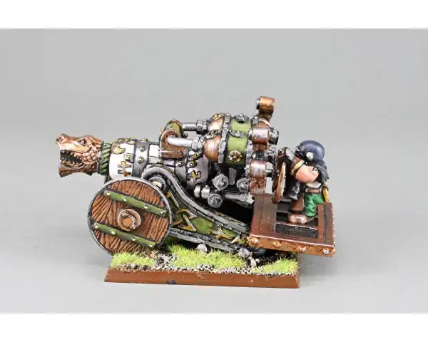 Flame CannonLarge object The flame cannon is a type of cannon that has one large barrel and the ability to shot an agonizing fire from that barrel, making it a weapon that is nearly a crime to use against an enemy. Though the cannon has the ability to shot a flame in a consistent line, it does use oil and/or other flammable liquids that are consumed at a fast rate forcing you to reload it multiple times during an encounter. It also has a long line range damage with an easy ability to change the direction of fire, even while in use. A flame cannon can fire flames in one direction using oil as ammo, it can use other flammable liquids to do the same effects. It takes two actions to load the flame cannon, one action to fire it, and a bonus actions to redirect the weapon. The weapon will continue to fire in a line for 1d4 turns before needing to reload. Flame Breath. The flame cannon shoots flame in a 30-foot line that is 5 feet wide. Each creature in that line must make a DC 15 Dexterity saving throw, taking 10 (3d6) fire damage on a failed save, or half as much damage on a successful one. |