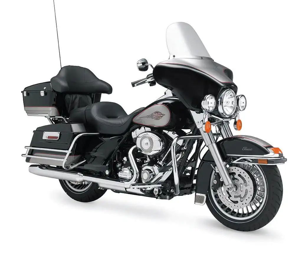 This motorcycle, known as the Electra Glide Classic is built for the character who loves two wheels but needs the ability to ride long distances and carry equipment.