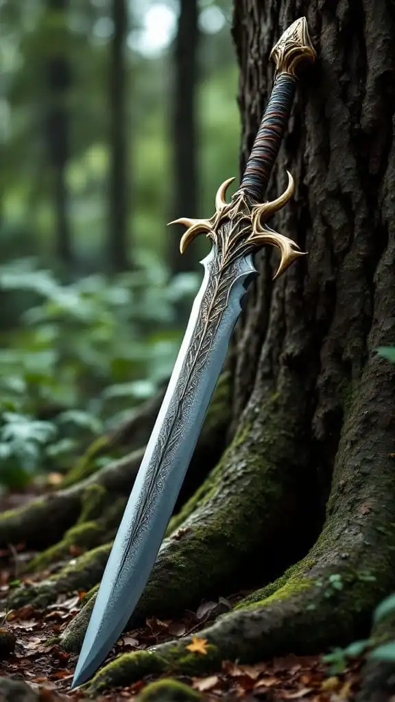 Weapon (longsword), rare (requires attunement) A finely crafted sword, clearly of elven inspiration, if not design. It is rugged, but still impossibly agile in the hands of a good wielder. Engravings are inlaid within the width of the sword, which catches the blood of it's targets. You have a +1 to attack and damage rolls with this sword. Additionally, if you hit a creature with this weapon, you have advantage on checks made to track them for the next hour. |