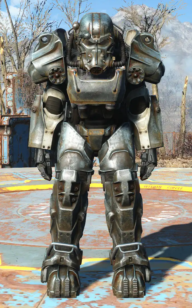 Developed in early 2077 after the Anchorage Reclamation, the T-60 series of power armor was designed to eventually replace the T-51 power armor as the pinnacle of powered armor technology in the U.S. military arsenal. The Brotherhood of Steel use them extensively across the US. This can be worn in conjunction with a power armor frame, and doing so negates this armor's Strength requirements.