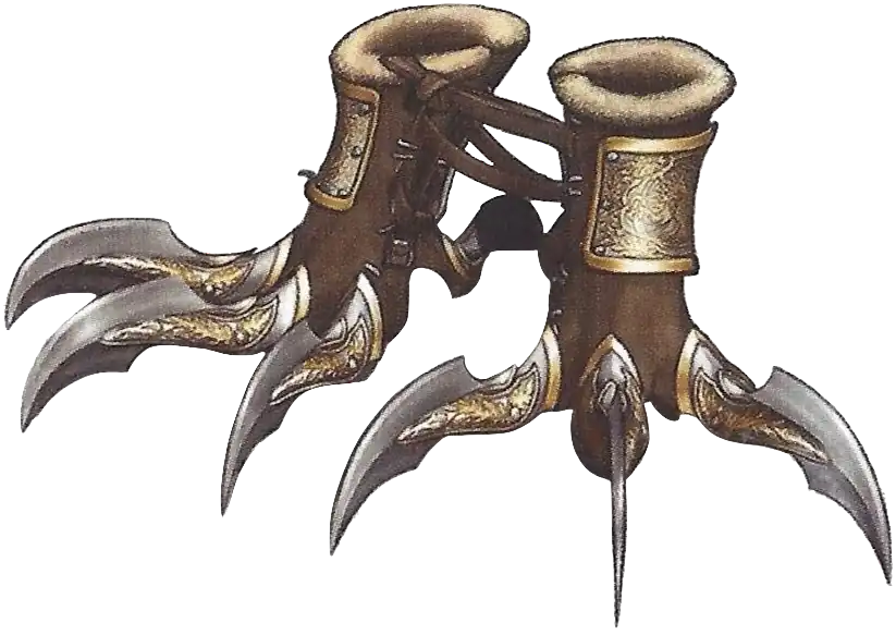 Weapon (footwear), rare (requires attunement) An enchanted pair of leather shoes that would be very comfortable to wear if it weren't for the giant metal blades protruding from each toe. These shoes were designed a very long time ago to enhance the use of talons as weapons of defense. In the Elemental Plane of Air, aarakocra soldiers are commonly seen with this dangerous footwear. Strange Fit. This magic weapon is treated as a weapon worn on the feet. However, attacks with your Talons are still treated as unarmed strikes and creatures that wear the Talonsbane are still treated as being barefoot. This weapon can also only be worn by creatures that have talons instead of normal humanoid feet. Raptor's Grasp. While you are wearing the Talonsbane, unarmed strikes with your Talons deal 2d6 slashing damage. This damage is treated as magical damage. In addition, the attack and damage rolls for your unarmed strikes with Talons are calculated with your Dexterity modifier instead of your Strength modifier. You cannot attack with your Talons more than 3 times per turn while wearing Talonsbane. Blinding Strike. If you make an unarmed strike with your Talons, as a bonus action you can also choose to not apply the extra damage from Raptor's Grasp. If you do so, you can choose to have the creature you hit with an unarmed strike make a Constitution saving throw or be blinded until the end of their next turn. The DC for this saving throw is equal to 8 + your proficiency bonus + your Dexterity modifier. |