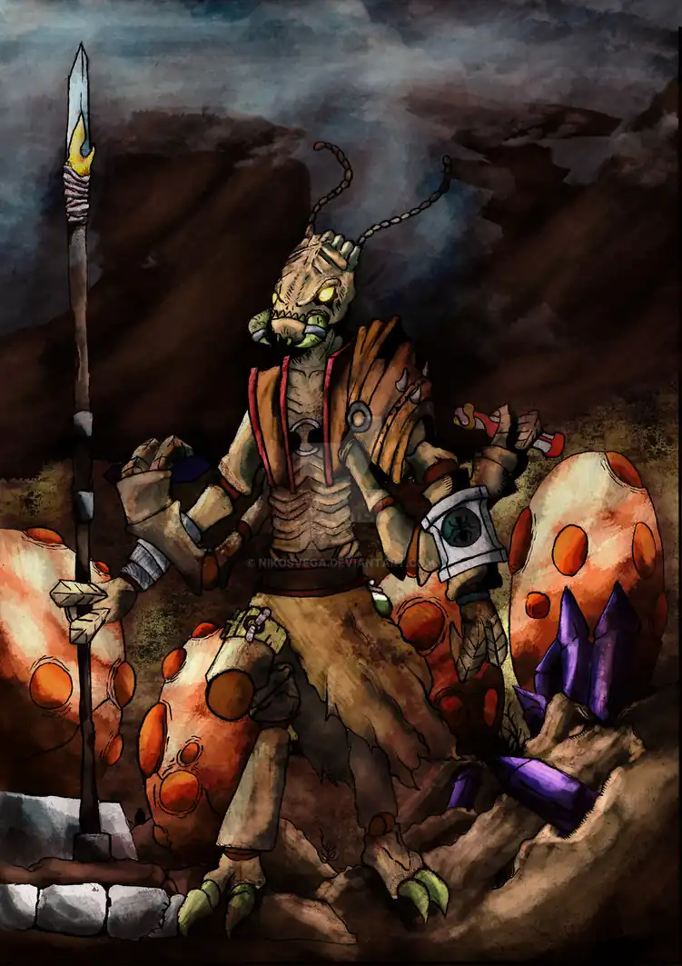 The Thri-Kreen are a highly versatile and diverse race of mantis-like humanoids who populate the surface, and in greater numbers, the Underdark. While they do appear on the surface fairly frequently, usually among grassy plains or desert regions, they usually have their hives in subterranean areas, and explore these areas for expansion and defense. Typically, they do have territory disputes with other subterranean races, such as the dwarves, drow, and the hobgoblins. While somewhat less powerful and intelligent than other races, the Thri-Kreen's large numbers and natural abilities, including latent Psionics, allow them to hold their ground.