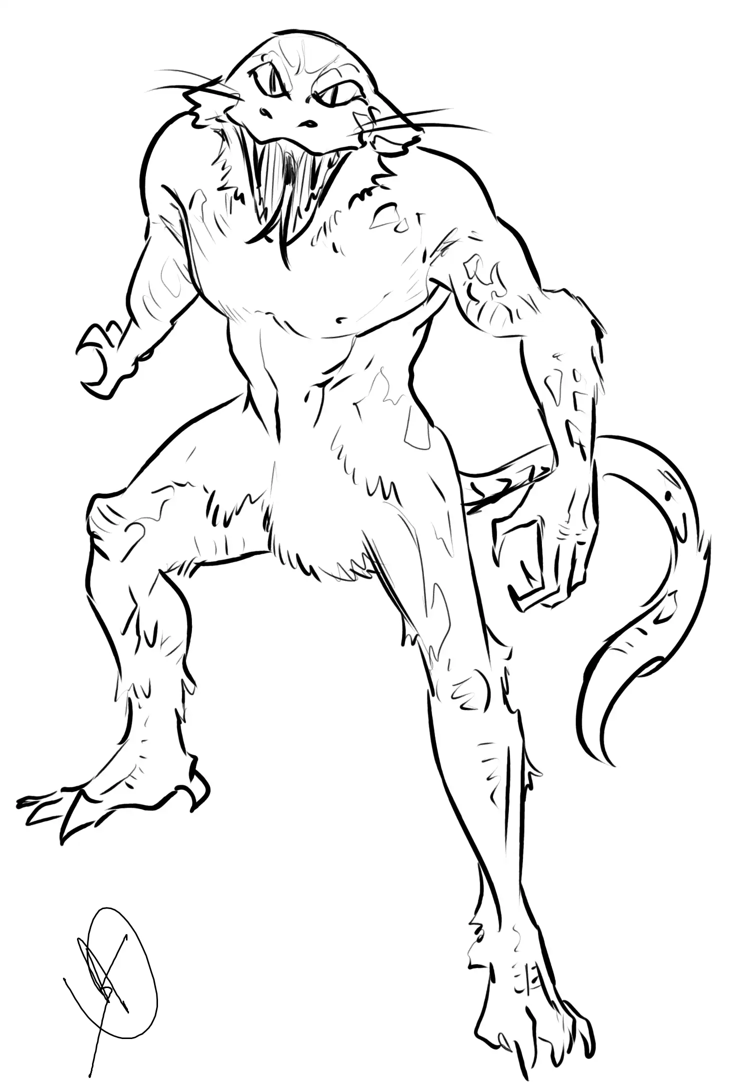 Truankia, with their powerful builds, rippling with muscles and covered in scales, are a sight to see. They have eyes that tend to lean more towards a serpents or feline eyes rather than human, with a slit pupil and large iris. Their forked tongues are long and rough. They have furry faces like that of a cat, but with snouts like a snake, and scales covering swaths around their bodies, particularly the lower region. Their furs can range in color from tabby to that of a tiger's pelt. They are extremely agile and fierce, having earned their savage reputation. Very few let go of their savagery and attempt to be civil. The prehensile tails aid them when leaping through the giant trees they call home.