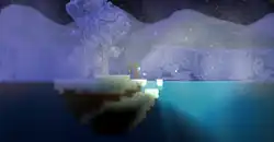 Nitrogen Seas are planets with an endless ocean of Liquid Nitrogen. They are cold, icy worlds with unbreathable atmospheres, requiring both an oxygen supply and protection against the cold. The surface landmass primarily consists of Snow and Ice islands that float loosely on the ocean surface, with sparse growths of frozen trees.
