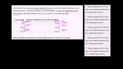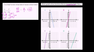 Compare features of linear functions, such as slope and intercepts, where the functions are given in different forms—tables, graphs, or formulas.