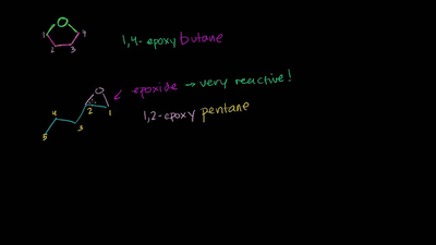 In this tutorial, Sal and Jay name epoxides. Jay also shows the preparation of epoxides and includes the stereochemistry of the reaction.