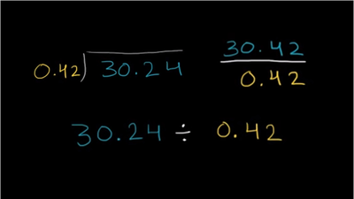 Learn long division with decimals. Solve problems like 30.24 divided by 0.42.