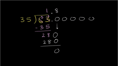 Dividing whole numbers like 56รท35 to get a decimal