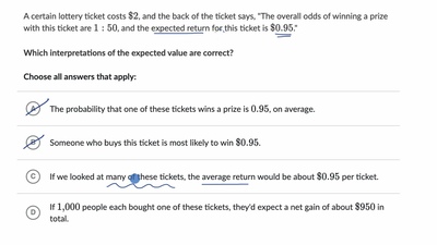 Will a basketball player score more points over time from a two point shot or a three point shot? How much money can we expect to win back if we play the lottery? This tutorial on expected value will help us answer these types of questions.