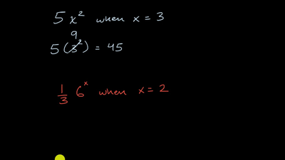 Evaluating expressions like 5x² & ⅓(6)ˣ