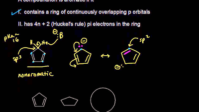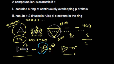 In this tutorial, Sal and Jay explain the concept of aromatic stabilization and show how to determine if a compound or an ion exhibits aromaticity. Knowledge of MO theory is assumed.