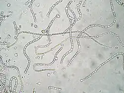 - Filamentous: a string of connected nonmotile cells, sometimes branching
