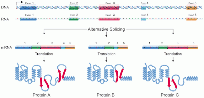 Since then, many other examples of biologically relevant alternative splicing have been found in eukaryotes.[1] The "record-holder" for alternative splicing is a D. melanogaster gene called Dscam, which could potentially have 38,016 splice variants.[20]