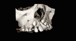 ![]() CBCT scan of the maxilla in an 11 year old showing a left alveolar cleft. | |
