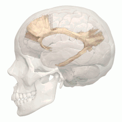 The cingulum is described from various brain images as a C-shaped structure within the brain that wraps around the frontal lobe to the temporal lobe right above the corpus callosum. It is located beneath the cingulate gyrus within the medial surface of the brain therefore encircling the entire brain. There are two primary parts of the cingulate cortex: the posterior cingulate cortex and the anterior cingulate cortex. The anterior is linked to emotion, especially apathy and depression. Here function and structure changes are related meaning any change within this structure would lead to a function change, particularly behavioral because of its function involving emotions. Damage to this area can have various effects on mental disorders and mental health. The posterior section is more related to cognitive functions. This can include attention, visual and spatial skills, working memory and general memory. Because of its location, the cingulum is very important to brain structure connectivity and the integration of information that it receives.[4]