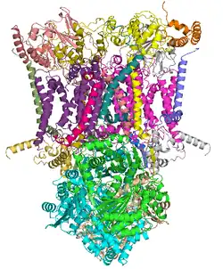 - ↑ Iwata S, Lee JW, Okada K, Lee JK, Iwata M, Rasmussen B, Link TA, Ramaswamy S, Jap BK (July 1998). "Complete structure of the 11-subunit bovine mitochondrial cytochrome bc1 complex". Science. 281 (5373): 64–71. Bibcode:1998Sci...281...64I. doi:10.1126/science.281.5373.64. PMID 9651245.