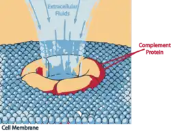 - ↑ Xie CB, Jane-Wit D, Pober JS (2020). "Complement Membrane Attack Complex: New Roles, Mechanisms of Action, and Therapeutic Targets". The American Journal of Pathology. 190 (6): 1138–1150. doi:10.1016/j.ajpath.2020.02.006. PMC 7280757. PMID 32194049.