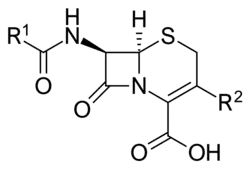 - ↑ Perez-Inestrosa, E; Suau, R; Montañez, MI; Rodriguez, R; Mayorga, C; Torres, MJ; Blanca, M (August 2005). "Cephalosporin chemical reactivity and its immunological implications". Current Opinion in Allergy and Clinical Immunology. 5 (4): 323–30. doi:10.1097/01.all.0000173788.73401.69. PMID 15985814. S2CID 13346333.