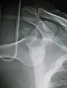 - ↑ 1.00 1.01 1.02 1.03 1.04 1.05 1.06 1.07 1.08 1.09 1.10 1.11 1.12 1.13 1.14 Bonz, J; Tinloy, B (May 2015). "Emergency department evaluation and treatment of the shoulder and humerus". Emergency Medicine Clinics of North America. 33 (2): 297–310. doi:10.1016/j.emc.2014.12.004. PMID 25892723.