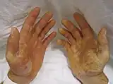 - ↑ 1.0 1.1 1.2 1.3 1.4 1.5 Freedberg, et al. (2003). Fitzpatrick's Dermatology in General Medicine. (6th ed.). McGraw-Hill. ISBN 0-07-138076-0.