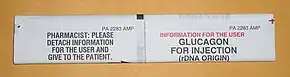 - 1 2 "Glucagon for Injection, rDNA formulation" (PDF). Lilly. Retrieved 23 February 2014.