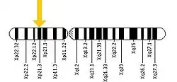 - 1 2 "Chromosome Xp21 Deletion Syndrome". Online Mendelian Inheritance in Man. National Center for Biotechnology Information. 8 December 2010. Retrieved 21 December 2012.