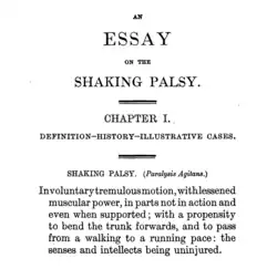 - ↑ Parkinson J (2002). "An essay on the shaking palsy. 1817". J. Neuropsychiatry Clin. Neurosci. 14 (2): 223–36, discussion 222. doi:10.1176/appi.neuropsych.14.2.223. PMID 11983801.
