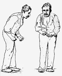 After Galen there are no known references unambiguously related to PD until the 17th century.[3] In this and the following century several authors wrote about elements of the disease, preceding the description by Parkinson. Franciscus Sylvius, like Galen, distinguished tremor at rest from other tremors, while Johannes Baptiste Sagar and Hieronymus David Gaubius described festination, a term for the characteristic gait of PD.[3][4][5] John Hunter provided a thorough description of the disease, which may have given Parkinson the idea of collecting and describing patients with "paralysis agitans".[3][6] Finally, Auguste François Chomel in his pathology treatise, which was contemporary to Parkinson's essay, included several descriptions of abnormal movements and rigidity matching those seen in PD.[3]
