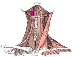 Muscles of the neck. Anterior view. Hyoglossal muscle in purple