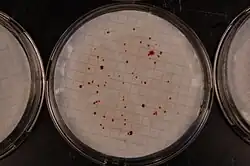 Indicator bacteria can be cultured on media which are specifically formulated to allow the growth of the species of interest and inhibit growth of other organisms. Typically, environmental water samples are filtered through membranes with small pore sizes and then the membrane is placed onto a selective agar. It is often necessary to vary the volume of water sample filtered in order to prevent too few or too many colonies from forming on a plate. Bacterial colonies can be counted after 24 to 48 hours depending on the type of bacteria. Counts are reported as colony forming units per 100 mL (cfu/100 mL).