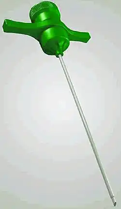 The Jamshidi needle is a trephine needle for performing bone marrow biopsy, whereby a cylindrical sample of tissue, a core biopsy specimen, is obtained. It is a cylindrical needle with a tapered cutting tip.[1] The tapered end reduces the potential of crush artifact.[2] It is the most commonly used needle for performing bone marrow biopsies.[3] The device is named for its inventor Khosrow Jamshidi who is an Iranian physician.[4]