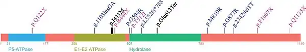 - ↑ 11.0 11.1 11.2 11.3 11.4 11.5 Podhajska A, Musso A, Trancikova A, Stafa K, Moser R, Sonnay S, et al. (2012-06-29). "Common pathogenic effects of missense mutations in the P-type ATPase ATP13A2 (PARK9) associated with early-onset parkinsonism". PLOS ONE. 7 (6): e39942. Bibcode:2012PLoSO...739942P. doi:10.1371/journal.pone.0039942. PMC 3386943. PMID 22768177.