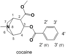 Middle: Cocaine with its numerical substitution position locants.