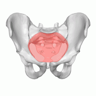 Its position and orientation relative to the skeleton of the pelvis is anatomically defined by its edge, the pelvic brim. The pelvic brim is an approximately apple-shaped line passing through the prominence of the sacrum, the arcuate and pectineal lines, and the upper margin of the pubic symphysis.