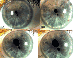 The signs and symptoms shown in a patient diagnosed with polycoria are associated with ocular and adnexal growth abnormalities.[10] The iris and the pupil become less effective. Signs can be present as a child; however, the patient may be diagnosed later in their life. This condition results in abnormal eye development affecting both eyes or just one.