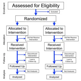 - ↑ Boutron I, Moher D, Altman DG, Schulz K, Ravaud P (2008). "Extending the CONSORT Statement to randomized trials of nonpharmacologic treatment: explanation and elaboration". Annals of Internal Medicine. 148 (4): 295–309. doi:10.7326/0003-4819-148-4-200802190-00008. PMID 18283207.