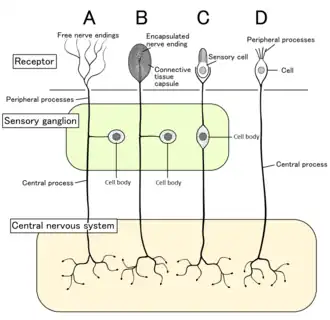 Media related to Sensory neuron at Wikimedia Commons- Purves D, Augustine GJ, Fitzpatrick D, et al., eds. (2001). "Table 9.1 The major classes of somatic sensory receptors". Neuroscience (2nd ed.). Sunderland MA: Sinauer Associates. ISBN 0-87893-742-0.