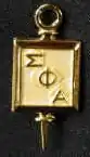 The society's emblem is a rectangular gold keypin with the Greek letters ΣΦΑ in a diagonal arrangement from the upper left corner to the lower right corner.[3] Its colors are deep purple and bright gold.